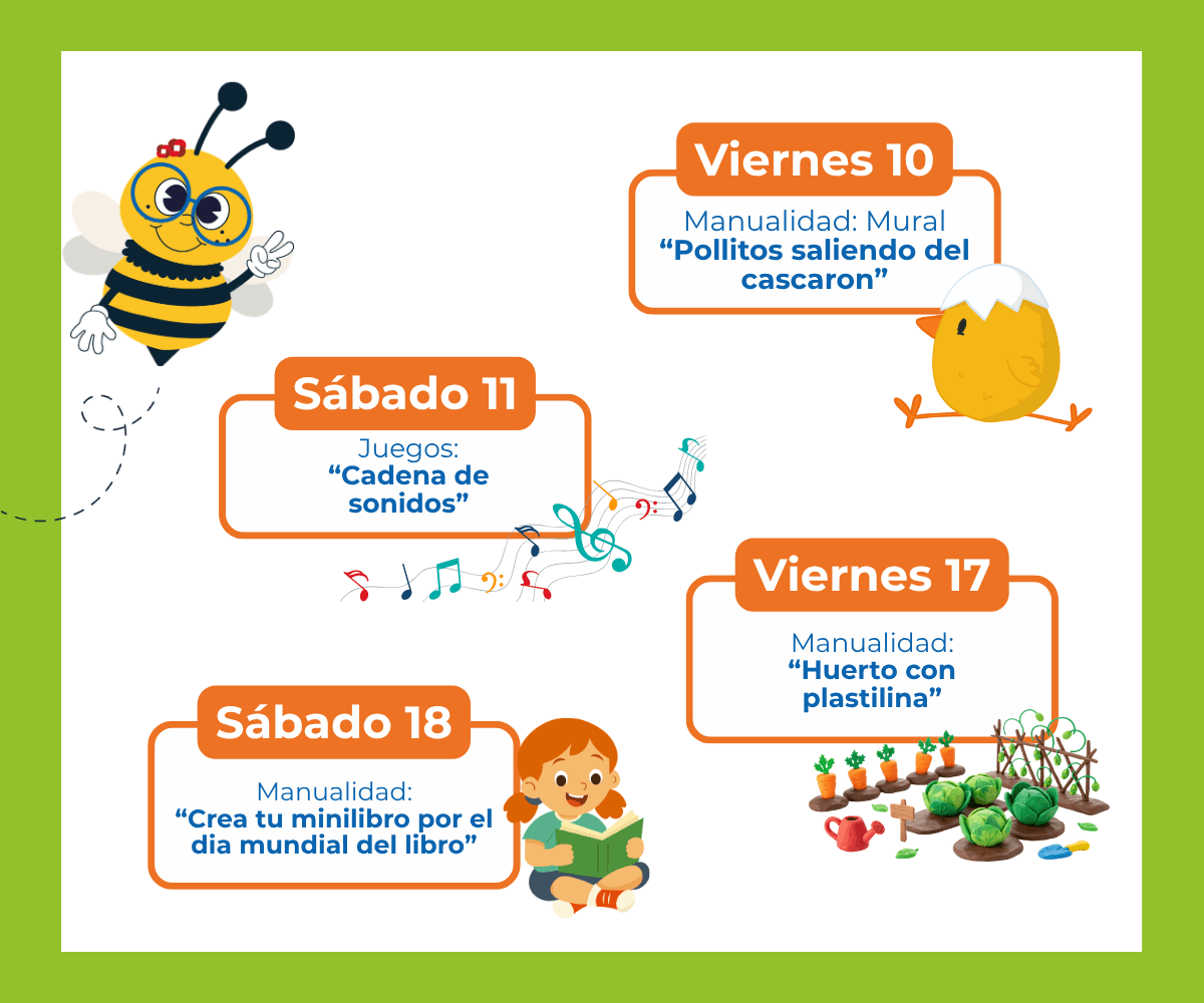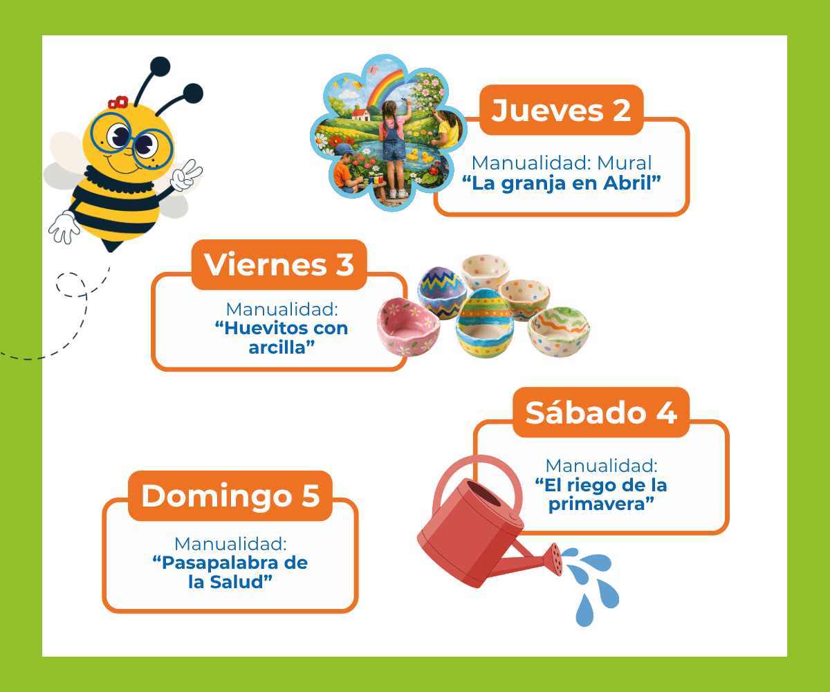 Este mes nos sumergimos de lleno en la primavera, con talleres llenos de color, naturaleza y creatividad. Vamos a crear, jugar y aprender con actividades inspiradas en granjas, huertos, animales, libros y el cuidado del planeta 🌱📚🌍
