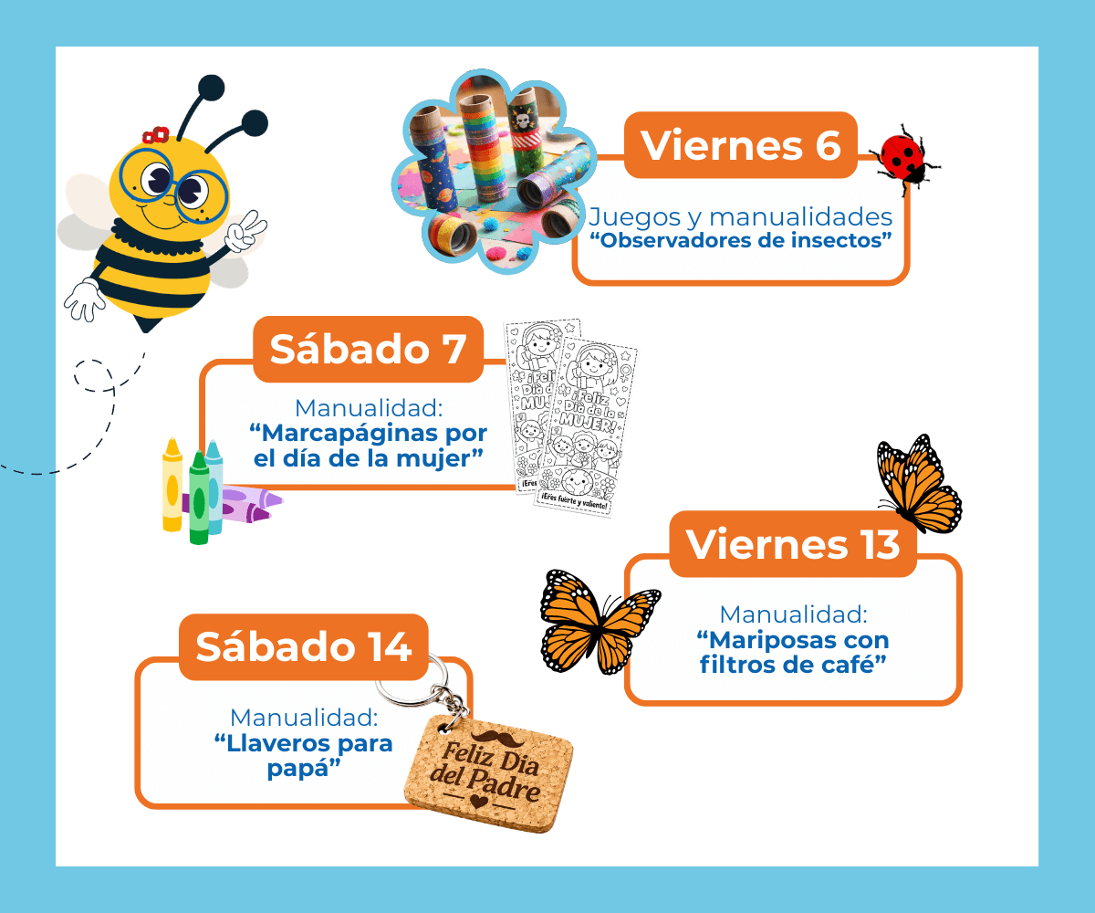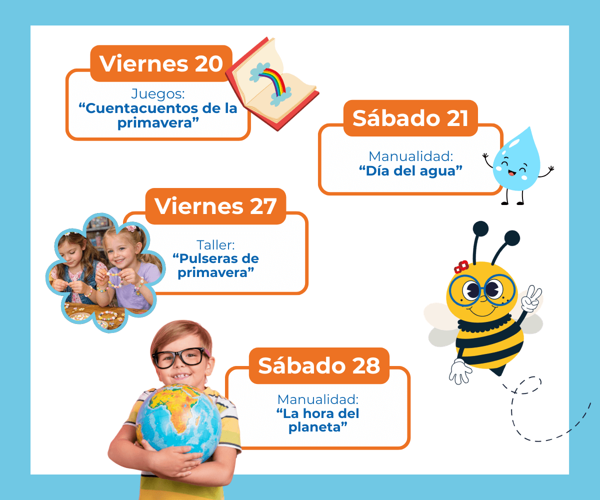 Este mes nos vamos a convertir en pequeños exploradores, vamos a llenar el club de primavera, podrás prepararle un regalo a papá, y haremos talleres sobre el Día del agua y hasta una actividad especial por La hora del planeta 🌍✨